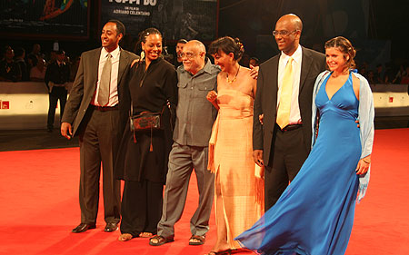 Regisseur Haile Gerima mit seinen Teza-Darstellern auf dem roten Teppich