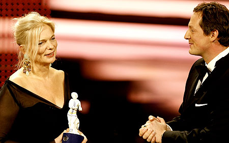 Laudator Dr. Eckart von Hirschhausen überreicht Petra Seeger den Bayerischen Filmpreis © BR Foto Sessner